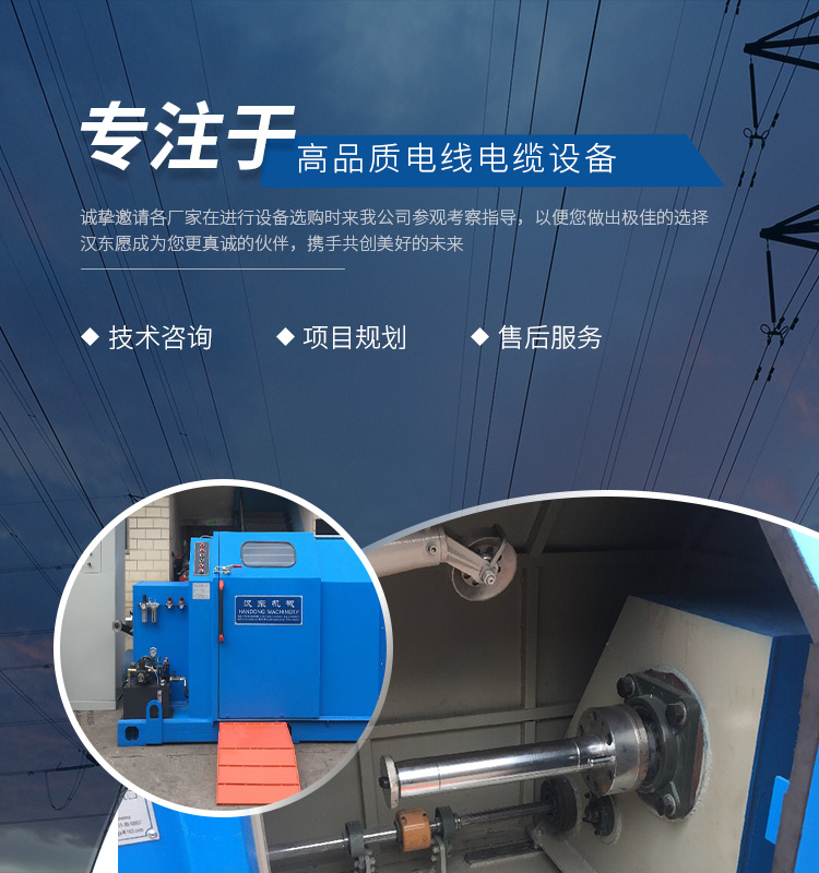 常州漢東機械始創(chuàng)于2006年,是集電線電纜機械設計、開發(fā)、制造、安裝、調(diào)試為一體化的高科技企業(yè)。本公司自開業(yè)以來,積極引進日本,歐美等國外電線電纜設備之先進技術(shù),先后成功推出了達到行業(yè)先進水平的電線電纜設備,主要產(chǎn)品有擠出、繞包、束線、成纜等電線電纜固定設備。在提供系統(tǒng)設備的同時,還向客戶提供售前技術(shù)咨詢、項目規(guī)劃、以及售后服務。我公司本著“以人為本、科技先導、用戶為上”的宗旨,為客戶提供牢靠的產(chǎn)品與省心的服務。漢東愿成為您更真誠的伙伴,攜手共創(chuàng)美好的未來!